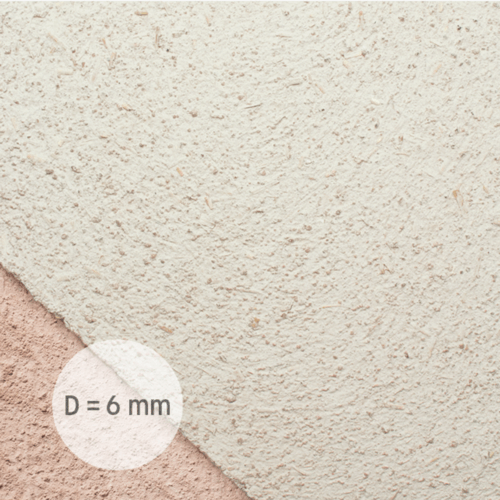 Single-layered, colored topcoat plaster for indoors. The material is typically applied at a thickness of 6 mm. This also makes it suitable for substrates that are too uneven for the application of a thin clay layer finish. The application also allows for the creation of coarse-structured surfaces. Coarse clay color plaster requires no further coating or painting. This not only saves costs: the clay surface in rooms can also be experienced in a pure and direct way.